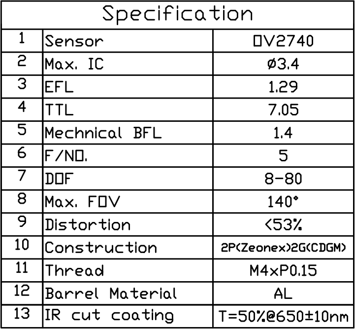 เลนส์ส่องกล้องรุ่น PM904 และ PM908 เหมาะสำหรับเซ็นเซอร์ของ 1/9", เช่น OV9734 และ ES101,