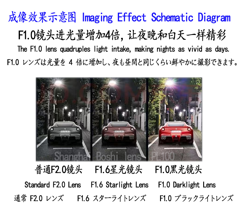 OคุณF1.0 เลนส์แบล็คไลท์ 4 มม. PL100ยังคงสามารถเก็บรายละเอียดของวัตถุได้อย่างชัดเจนแม้ในสภาพแสงน้อย ในขณะเดียวกัน ก็แสดงให้เห็นถึงข้อได้เปรียบที่สำคัญในการลดแสงเล็ดลอด ความคมชัดของภาพขอบ และการส่งผ่านแสง และมีอัตราผลตอบแทนที่สูงขึ้นและความสม่ำเสมอของผลิตภัณฑ์ดีขึ้น