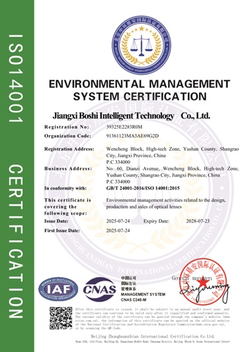 นี่แสดงให้เห็นว่า Baoshi Intelligence ได้สร้างระบบการจัดการที่ได้มาตรฐานซึ่งครอบคลุมห่วงโซ่การวิจัยและพัฒนาเลนส์ การผลิต การขาย และบริการหลังการขายทั้งหมด ซึ่งวางรากฐานที่มั่นคงสำหรับการจัดหาผลิตภัณฑ์และบริการคุณภาพสูงอย่างต่อเนื่อง