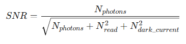 อัตราส่วนสัญญาณต่อเสียงรบกวน (SNR) ในอัลกอริทึม ISP สามารถอธิบายได้โดย: